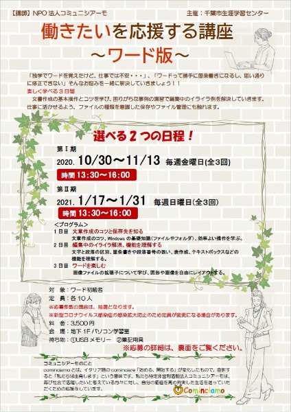 ワードの文書作成の基本操作とコツを学び、困りがちな事例の演習で編集中のイライラ例を解決していきます。仕事に活かせるよう、ファイルの種類を意識した保存やファイル管理にも触れます。
